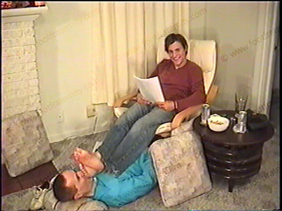 In jeans, white “shortie” sox, Jaret gets a fan letter from a woman who is into his feet. He loves this worship while a guy is there in person, serving at his feet. He tells of his sensual fantasies while having foot worship. Sock sniffing, bare feet licked, kissed, toes sucked & more. Two views of this scene, one close up. He is excited & turned on by the words. He teases & laughs at taking worship from all. Ashes in mouth , domination, orders, etc. This hetero experience talk excites him during foot love making to his feet by a guy! He LOVES this power and the action at his sweaty, Str8, jock feet as he reads this revealing letter with much hot str8 talk about what he likes! He knows that he rules because he is a hockey jock.