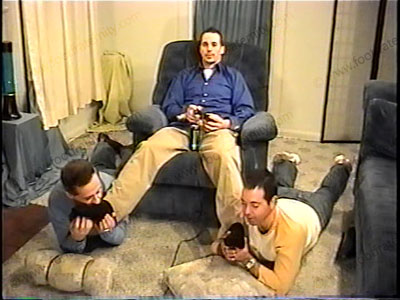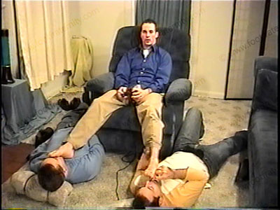 With two guys underfoot & Skyler in a nice shirt, slacks & dark nylon dress socks, as he relaxes on lounge chair for total love making of his socks, then the bare feet while having fun on PlayStation doing video games. The guys smells socks, as Skyler is just himself, enjoying the service of a guy on each foot to massage & service them while he mostly ignores them to play his game. His socks are serviced, sniffed, licked then his size 13 barefoot licking, kissing the soles & toes & toe jam. This guy honestly loves the attention to his feet & wants foot love on a regular basis. Two views of this scene, one full, one close up. No domination or roles, just this Str8 guy being himself, wanting the “foot love” made to his feet on a regular basis.