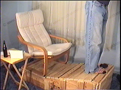 With his slave locked in a specially built box with only his face available through a hole in the top, Skyler teases & torments the slave’s face as he cannot move & must take whatever is dished out. Skyler rubs the face (with his sox & bare foot) of the slave’s new confinement box. He has his sweaty dark dress socks sniffed & bare feet serviced. Two great views, one full, one close on the slave’s face as Skyler gives orders, teases & humiliates his slave who must do much foot service, sox action & foot licking, toe sucking & licking between the toes, toes in nose, etc. Teasing, verbal orders. Skyler loves this power of a foot slave in the “sissy cage.”