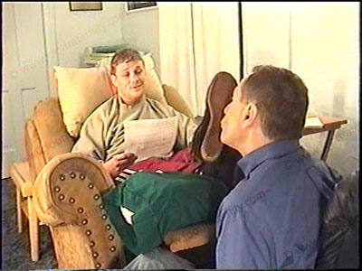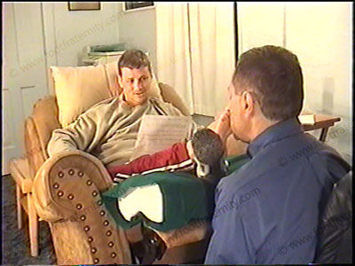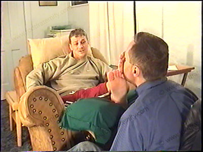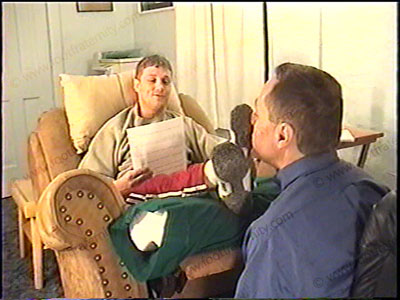 After boxing work out, he is dressed in sweats, short white sweat socks, & boxing boots as he relaxes on the easy chair with his foot slave pinned at his feet for the service of his sweaty socks & bare feet worship. Domination & worship of his sweaty socks & bare feet, as He is teasing, controlling, demanding, & smiles. MUCH verbal & enjoys the power of being Straight jock with sissys who pay to be humiliated by him while at his feet. Two views of this scene, one full, one close up. Total verbal & control, as he does this naturally and LOVES the power trip. VERY powerful boxer & controlling Straight Stud.