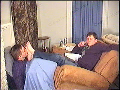 In jeans, short sweat socks, he lays back with his foot bitch kneeling at his feet for worship, service of his sweaty socks & bare feet, Perry tells about how cocky he is to get anything he wants because of his good looks & Straight ability. Ashing, spit, teasing, laughter & total Straight guys rule power! Total verbal teasing from a true jock, who loves this power & having a bitch to control & worship in this reality TV film. His true personality is presented. Ending with foot love making as he watches a hot film.