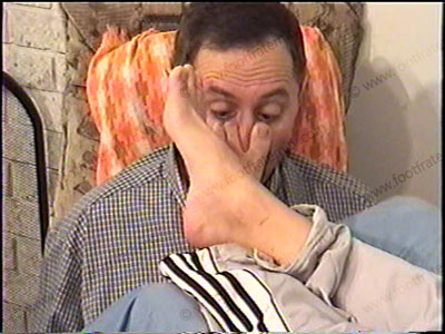 In his work out pants, T-shirt, sneakers & sweaty white socks, this hot boxer tells about his feelings with having foot slaves & teasing, laughing while using this power. With slave pinned at his feet, he has fun while wiggling his socked & bare feet in his slave’s face while responding to photos, comments, questions, etc. Complete foot service – kissing, licking, toe sucking & more during whole scene. One close up view one full length from bottoms of his feet. He is a friendly guy who digs this power of teasing, laughing & having foot worship.
