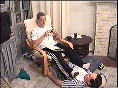 In his work out pants, T-shirt, sneakers & sweaty white socks, this handsome boxer is taking the power. With slave at his feet, he laughs, teases, smiles, spits, takes gifts & has fun while wiggling his socked & bare feet in his slave’s face. Total foot teasing, kissing, licking, etc. Complete foot worship, sock sniffing, toe sucking, toe jam, eat toenail clippings, foot kissing and more during whole scene. He takes blackmail photos. One close up view one full length. He teases & mocks his bitch, giving him the commands of all he must do to serve him & his feet. This straight jock is lovin’ this newfound power at his feet. He tells his thoughts & commands on ideas on many things that prove STRAIGHT GUYS RULE.