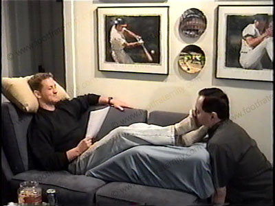 In his work boots, jeans, sweat shirt & sweaty white socks really good looking boxer describes his new website & what foot slaves will do & why they must serve the feet of straight guys like him. With slave kneeling at his feet, he laughs, teases, smiles & has fun responding to many comments while wiggling his socked & bare feet in his slave’s face. Total foot teasing, kissing, licking & more while he enjoys the amusement of the power he was born to have just for being an athlete & straight. Complete foot worship during whole scene. One close up view one full length. The slave gives gold to propose to Master Ace’s feet. Ace is a “laid back jock” who just takes the power and walks away with it. His arrogance & easygoing nature is very erotic.