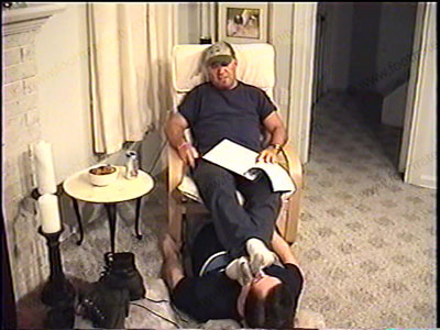 With a beard, in his work out pants, baseball cap, work boots & sweaty white socks, this skin head guy loves the power of having a slave serve his boots, socks and sweaty feet. Muscular hot Rocco (in his 40’s) has slave bring out worn socks that he wore over 20 years ago to be put back on his feet and worshipped. Sock & bare foot action. Much rubbing of his feet in slave’s face, footstool, licking between toes, giving the “finger”, etc. He loves the power he has being straight with foot bitches that pay to be under his redneck feet. Verbal, hot talk, teasing & complete foot action.