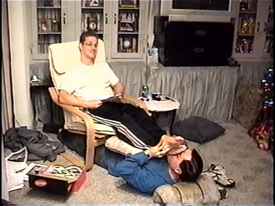 In his work out pants, T-shirt, sneakers & sweaty white socks, this true life, really good looking boxer & kick boxer tells his buddy, Bill, what foot slaves should do & why they must serve straight guys like him. With slave pinned at his feet, he laughs, teases, smiles & has fun forcing the slave to PAY for the traffic ticket that he just got. This is a rule in serving Straight guys that sissys must do, then kiss their feet for paying it! Hot! Many comments while wiggling his socked & bare feet in his slave’s face. Total foot teasing, kissing, licking & more while he enjoys the amusement of the power he was born to have just for being an athlete & straight. Complete foot worship during whole scene. One close up view one full length. This is a “reality” film where he watches & responds for real about this whole scene, truly loving the whole scene of being worshiped for real.