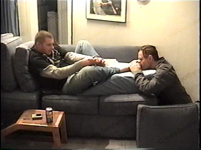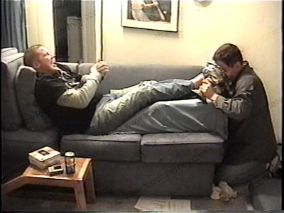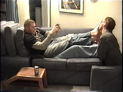 Big, bare, meaty size 13, macho feet. More of the above film but this is solid bare foot action while all of the above continues to happen. Water sports, teasing, MP-3 Player is given to his feet, as his control increases and he laughs about his “foot power”.