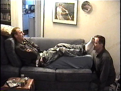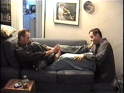 Macho, jock, straight Royce lays back to relax while his foot slave makes love to his sweaty white work socks after work, then adoration to his sweaty, bare feet. He relaxes, dominates & teases, name-calling, ashes, etc. He is a macho red neck worker, very REAL as he has a slave serve him & his feet, lick them, suck toes, eat toe jam, etc. Two views, one full length, one close up. Blackmail photos taken, then cat naps during foot worship while slave’s head becomes a foot stool for the superior construction worker’s feet.