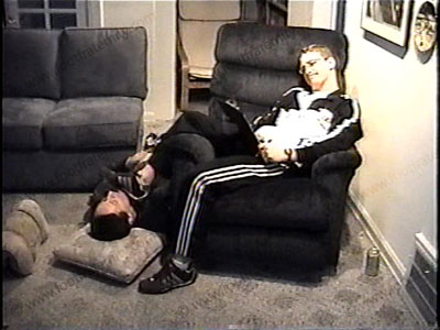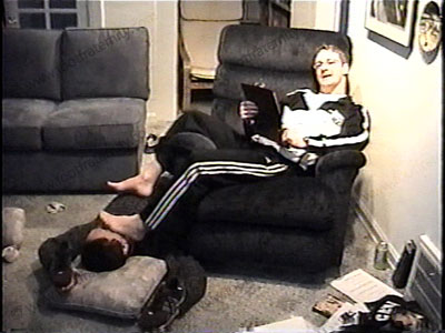 Macho, jock, super straight, boxer Ace teases & mocks his foot slave after a workout while talking about the whole scene to his buddies. He sits in a chair, dangling his legs over the side in the sissy’s face. He is wearing sweaty white shortie socks & workout clothes while teasing with his feet in his bitch’s face. He dominates, orders & teases, name-calling, etc. He is a macho red neck kick boxer, very REAL as he has a sissy serve him & his feet, lick them, suck toes, eat toe jam, etc. Two views, one full length, one close up. He truly really knows how much power he has for real at his feet and how he can use us on his foot slaves. He chills, sits back to relax while teasing, laughing & taking gifts, money & full control. Total teasing with his feet & toes.