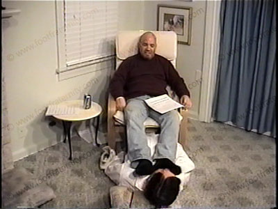 Macho straight, truck driver Rocco dominates & mocks his foot slave while talking about the whole scene to his bitch. He sits in a chair, with bitch underfoot. He is wearing sweaty dark socks & jeans while teasing with his feet in his bitch’s face. He dominates, orders & teases, much spiting in face, name-calling, etc. He is a macho red neck, racist, skin head worker, very REAL as he has a bitch serve him & his feet, lick them, suck toes, eat toe jam, etc. Two views, one full length, one close up. He truly really gets the idea here of how much power he has for real at his feet and how he can use us on his foot slaves. He chills, sits back to relax while teasing, much laughing, mocking & taking full control. Total teasing his bitch with his feet & toes. Finally using slave as a footstool while watching hot films.