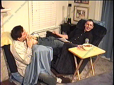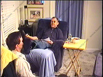 In from Brooklyn, hot, straight military stud Master Riley has foot worship & service for the first time! He likes it. He is wearing dark gold toe dress socks as he commands foot massages, kisses, foot sniffing and takes power over foot slaves. He teases & mocks his foot slave after a while talking to his buddy, John, who is also in the room. He sits in a Lazy boy chair with slave bitch pinned at his sweaty feet. He dominates, orders & teases, name-calling, etc. He is a macho New Yorker with a twin brother, who both like having foot service. Very REAL as he has a sissy serve him & his feet, lick them, suck toes, eat toe jam, etc. Two views, one full length, one from the bottom. His military training makes it easy for him to know how much power he has at his feet and how he can use us on his foot slaves while laughing at them. He & John, sit back to relax while teasing, ashing, mocking, much laughing & taking full control of foot slaves. Total teasing with his feet & toes. He LOVES foot massages and getting paid for it.