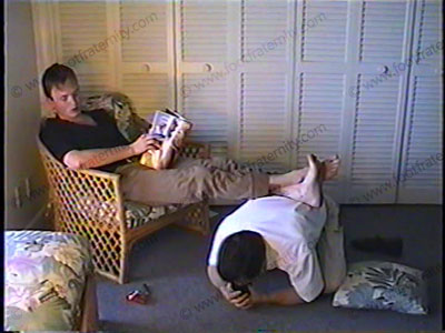 Scenes from several settings with two views of a slave being a footstool to Straight men as they relax. This entire film is just the humiliation of kneeling at the feet of these men to just be a foot stool while they relax, read, watch TV, etc. Some of the Straight guys include Troy, Ace, Travis, Adair, Brent, Kyler, Jack, & more. Totally humiliating, making the Straight guys superior.