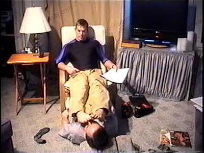 In sneakers & tight Under Armor work out shirt, grey sweat socks, this really good looking 20 year old body builder relaxes & humiliates, dominates & teases his sissy slave at his feet as sits over him with is feet in his slave’s face. He makes a tape for his work out buddies at the gym & embarrasses his bitch sissy slave with youthful, cocky arrogance of a young guy - domination, humiliation, verbal, teasing, foot massage, etc. Then sock sniffing, bare foot worship, licking, etc. One full view, one a close-up. His commands are humiliating as he makes himself a Master to all sissy foot slaves! He shoves his socked, then bare size 13, perfect shaped, long narrow toes, high arched feet in the bitch’s face & uses his head as a foot stool! He now knows exactly how to dominate a foot sissy like a macho sports jock would do it. He mocks the slave & toys with him by using his jock feet on his slave’s face.