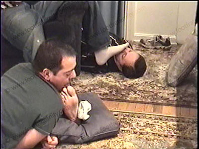 After a hockey game, serving as the referee, Cole is dressed in jeans, thin white dirty socks, & sneakers as he relaxes on the Lazy boy chair with his foot slaves beneath at his feet for service of his sweaty socks & bare feet worship Two angles & positions. With slaves beneath his feet, he makes them pay for serving & worshipping his Straight socked & bare feet. He laughs & loves this power action. Total foot teasing, kissing, licking, toe wiggling, sock smelling & more while he enjoys the power he has for being straight & ruling over sissys. Complete foot worship during whole scene with much verbal teasing. He goes through the “sissy Rule Book” for serving Heterosexual Men and their feet, & gives humiliation to both foot slaves under these perfect arched, macho feet with one slave at each foot. Extremely exciting and power play scene of this Master and two slaves. He is very cocky & relaxed as he likes this worship. He is loving this foot worship service & commands more.
