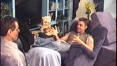 In Lazy boy chair with bitch pinned to wall, Jay in jeans, T-shirt & nasty short black socks, this really good looking Marine stud relaxes & humiliates, dominates & teases his sissy slave pinned at his feet while he laughs, mocks, teases, humiliates, gives orders, etc.. He is cocky, arrogant & demanding while his slave is serving his feet. He embarrasses slave, wipes his socked feet all over the face the whole time. Spiting & total foot teasing, kissing, licking, with much humiliation & more. Then he reads many "What if" situations for sissys on what they should do if certain situations come up with a Straight guy. He gives his dominating response, then tells the response from the "Sissy Rule Book". He starts with his socks serviced, sniffed & worshipped as he talks. Then bare feet licked, kissed, toes sucked & more, as he rubs his feet all over the slave's face during the scene. His cocky, arrogant, attitude is mixed with hot talk, smoking, laughing & teasing commands. Two views of this scene, one close up.