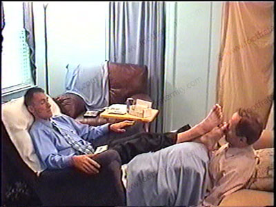 After a work, this macho Jock Yuppie is dressed in slacks, nice shirt, tie, straight tip dress shoes & gold toe socks as he relaxes on the lazy boy chair with his foot slave pinned at his feet for the service to his sweaty socks & bare feet worship while he relaxes, text mails his work & uses his brain to take control of a foot bitch. He responds to thoughts about this new position that he is experiencing of controlling, commanding, with verbal responses & enjoys the power of being Straight jock with slaves who pay to be humiliated by him while at his feet. His slave is worshipping & sniffing sweat socks, along with bare feet & toes served, licked & kissed. Straight jocks rule. Two views of this scene, one full, one different angle. Reed does this naturally and is amused at the power trip at his feet. He is extremely macho & good looking with size 12 feet, arrogant, conceited & cocky. He likes how it feels to have a submissive grovel at his feet & be his total slave. Much humiliation, teasing, ignoring the bitch and more.