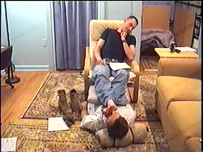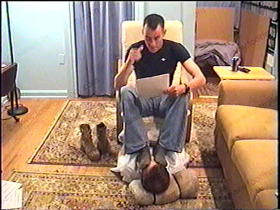 In his jeans, tight Under Armor T- shirt. lace up boots & dark grey sweaty socks this really good looking guy describes a web site devoted to his feet & what foot slaves will do & why they must serve his feet & other needs. He is sitting in a chair using slave’s face as a foot wipe. With slave beneath his perfect shaped feet, for kissing, licking & service, he orders, teases, controls & has power by making many rules & comments while placing his socked & bare feet in his slave’s face. Total foot teasing, kissing, licking & more while he enjoys the amusement of the power he was born to have just for being straight. Complete foot worship during whole scene. One close up view one full length. His arrogance & power nature is obvious. Complete humiliation & embarrassment of his foot sissy bitch.