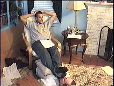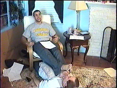 After work, redneck, sports jock, arrogant, super macho Master Colt is in work out pants, T-shirt, dirty gym socks as he relaxes on the chair with his foot slave beneath at his feet. During a sock sniffing & service, he tells his bitch what he expects as he humiliates him beneath his socked & bare feet & tells his thoughts about foot slaves while wiping his sweaty socks in his bitch’s face & forcing foot sniffing & kissing. Two views of this scene, one full, and one close up. Then bare foot action for more of the same. He is amused, cocky, macho and loves getting paid by foot slaves to lick, kiss, and suck on his bare feet while he relaxes. He tells about the entire foot domination scene. He is a Stealers man and forces his feet in the face of a Browns fan. He uses the power that he has in a bigoted, tough guy manner. Total foot fetish film for fantasy becoming reality! He smokes, spits in face, stands on him, chills, & answers questions of how he feels about having foot slaves. Gifts presented to him as he dominates & teases using his sissy as a foot stool and slave.
