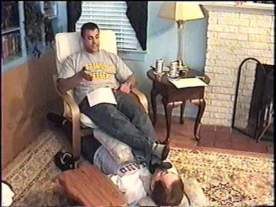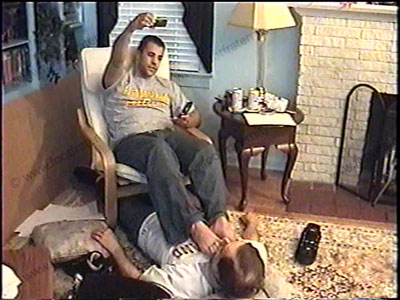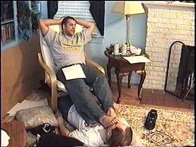 After work, this macho jock, Colt, is wearing a T-shirt, & sweat socks as he relaxes on his easy chair with his foot slave lying on the floor, beneath his feet for worship & service of his sweaty socks & athletic bare feet. During this worship, he tells how it is to be in life for foot sissys & they all have to pay for his feet & for his controlling, ruling & commanding the slaves to be humiliated by him while being teased at his feet. Two views of this scene, one full, and one close up. Colt loves it that Alpha guys like him are paid by a foot slave to worship & service his sweaty feet. He likes control & giving orders as he chills & smokes during foot action. He mocks his sissy while using him as a foot stool, sitting back & enjoying the power that he has as he gives commands, orders & keeps his feet in slave’s face. He then forces him to worship his feet simply because he is Straight, Macho, Alpha Stud as he laughs & teases his bitch with lots of bare foot action & toes flexing in the face while he chills & dominates. He loves being in control of foot sissys. Straight guys rule!