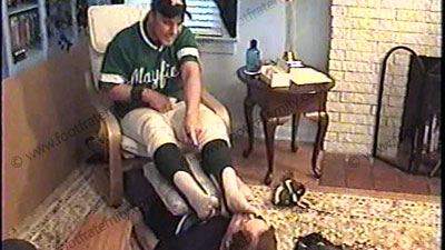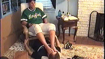 After a game, in full baseball uniform, this stud relaxes on his chair with his foot slave lying beneath his feet for worship & service of his perfect jock feet. This is THE HOTTEST SCENE of Grayson teasing, laughing and mocking his foot slave for needing to worship his feet. During this worship, he mocks and teases his slave like the guys did in high school. He laughs and chants teases with his sweaty bare feet in his slave’s face (since he is straight) & controlling, ruling & commanding slaves who pay to be humiliated by him while at his feet. Two views of this scene, one full, and one close up. Grayson loves it that Alpha guys like him are paid by a foot slave to worship & service, lick, kiss and be humiliated under his sweaty bare feet. First baseball stirrups and thin white baseball sock action, then barefoot worship. He likes control & giving orders as he commands during foot action. Toes & feet all over sissy’s face and in his mouth, spit, solid verbal. He sets the rules for the foot slave’s future & laughs more about his ability to do this to a sissy who has to PAY! Hot verbal and awesome teasing with his mocking comments & commands – with blackmail photos taken. Slave’s face it strapped to the bottom of Grayson’s socked feet using his stirrup as the stud laughs his ass off. This is everything that the hot jock in high school would have done to a foot sissy to tease & totally embarrass and humiliate the nerds. It’s your fantasy come true as Grayson totally humiliates a foot slave.