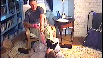 After work, this Yuppie in sweaty sheer thick-n-thin dark dress socks as his weejuns are removed for total teasing, laughter from this jock as he wipes his socked feet all over his slave “foot-stool” who is wearing a dog collar and leash held (& tugged) in the strong hands of this macho stud. Total sock scene (no bare foot) with much verbal arrogant mocking & teasing while receiving foot worship & service as he relaxes on the chair with his foot slave beneath at his feet. During a sock sniffing & service, he tells his bitch what he expects as he humiliates him beneath his socked & bare feet & tells his thoughts about foot slaves while wiping his sweaty socks in his bitch’s face & forcing foot sniffing & kissing. Two views of this scene, one full, and one close up. Friendly, mocking, yet controlling as he loves his power and the control that his socked feet have over foot sissy slaves who NEED to be at his feet. He truly KNOWS that we NEED to be in this position to him. This scene is really exciting as he shows the ultimate teasing while laughing as he controls with his sweaty feet. More happens – it’s too thrilling to even write! AWESOME STRAIGHT GRAYSON IS OUR GOD as we lie beneath his feet and beg for more.