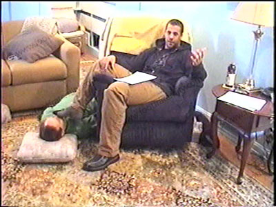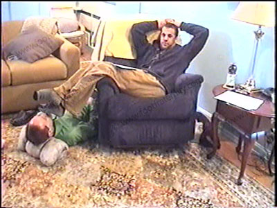 In his “hoodie” sweat shirt, khaki pants, grey work out sweat socks, this really macho jock redneck guy chills & humiliates, dominates & teases his sissy slave at his feet during this audition film for the Jerry Springer Show. He talks to Jerry in the camera while his slave is serving his socked & bare feet. He embarrasses slave, wipes his feet all over the face while doing the audition. Total foot teasing, kissing, licking, massaging, with much humiliation & more while he answers Jerry’s questions for the studio audience. He talks about the power he was born to have just for being straight and having sissy foot slaves. Complete foot worship with many commands & orders during whole scene while Master Colt just commands & gives the audience what they want to see – a macho jock making a foot slave into his foot bitch. One full view, one close up as he is “getting into” being a Straight Jock who can get away with foot slaves worshipping his feet as he sits in an easy chair with his feet hanging over the arm of the chair in the sissy’s face as he toys with his slave. Colt is a “street wise” Rap music lovin’ Stud. He demands foot slaves.