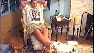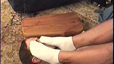 In only shorts, T-Shirt, sneakers, sweaty white socks, straight cocky, Grayson has his foot slave beneath his feet while he reads some of his fan mail from foot slaves. It’s dominating, humiliating & embarrassing for the slaves to hear cocky, arrogant Grayson verbally humiliate them while giving orders & commands in a powerful way to his foot bitch who is serving his socked & bare feet. Hot talk as he loves treating us like crap, calling us names, & expecting socked & bare foot worship, while realizing that all of this is real & true. Two views, one close up & one full view. Hot attitude of superiority of being above us while his straight feet are in our face with MUCH laughter and teasing while he humiliates & teases with his feet in his slave’s face. Mocking, teasing, taunting, controlling and dominating foot sissys who have to follow his commands to serve his macho stud feet as he gives more humiliation, spitting in slave’s face & teasing with much laughter as he wipes his feet all over his sissy’s face. Total socked and bare foot domination scene as his slave pays taxes & gifts at the Master’s feet. Powerful humiliation in this awesome humiliating foot scene.