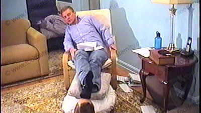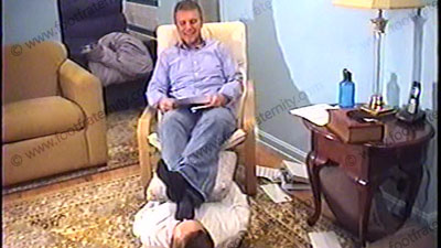 Relaxing in Bass Weejuns, black sheer thick-n-thin dress socks, as this macho alpha stud relaxes with foot slave laying beneath his feet for worship, service of his sweaty socks. He humiliates his foot slave, giving his bitch orders, commands & is demanding, teasing with much laughter, verbal & enjoys the power of being a very cocky & arrogant & he reads the confession from a football player who needs to serve his feet. Socked feet & toes sniffed, kissed & licked as he watches. He likes to tease with his macho feet & prove that Straight Guys Rule. Name calling, teasing with his macho feet, sock sniffing, smelling & worshipping his feet while telling all his thoughts & commands. Total verbal teasing, humiliation & commands during foot worship as he uses slave’s face as a “play-toy” for his toes & feet both in socks. He is good looking arrogant, conceited & cocky & truly controls his foot sissy bitch slaves. He naturally KNOWS just what to say to tease, and dominate foot sissys with lots of mocking chants while “making fun” of his slave. Two views, one full, one close up. Grayson laughs his ass off at the pleading bitch that needs his hot feet. Total verbal, laughing & teasing while complete foot service to his sheer socked feet through the entire scene. (No bare foot action)