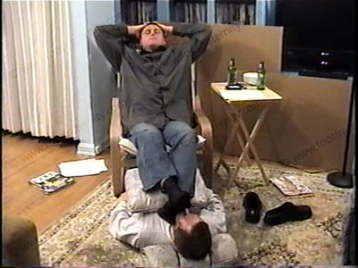 Macho, jock, straight Morgan teases & mocks his foot slave after work while talking about the whole scene with verbal abuse and commands. He is wearing jeans, black sheer dress socks as he sits in a chair, with his feet in the sissy’s face, and using him as a foot rest. He dominates, orders & teases, name-calling, etc. He is a macho, very REAL Jock & he has his sissy serve him & his feet, lick them, suck toes, eat toe jam, etc. Two views of this scene, one full, and one close up. Morgan does this naturally and is amused that Straight guys like him are paid by a foot slave to worship & make love to his sweaty feet. He is very well built with huge size 15 feet, commanding & loves the power he feels during foot worship. He sets the rules for us to use as his foot bitch, while enjoying the control that he has as he gives commands, orders & wipes his feet in slave’s face, totally degrading & humiliating him. A moment of reality as he truly knows how much power he has FOR REAL at his feet and how he can use his foot slaves for his needs. Total teasing with his feet & toes to get just what he wants. He likes to use his socked & bare feet and toes to play with his slave’s face & nose. Much toe flexing & wiggling in his slave’s face as he truly accepts the reality of this situation and what he can get from his foot bitch from this point and in the future. VERY POWERFUL as he thrives on control & power over foot slaves.