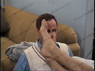 A hidden camera used in two of the scenes listed above, show two hours of close up worship of mostly the tops of these HUGE Size 15, high arched, macho feet as he toys with his slave. One hour of the film is sock worship from this close up version of the sole, and one hour of barefoot worship, licking and service while he laughs & dominates his foot slave. This is great for those who love seeing the action on the tops of a stud’s feet in a very close up angle. HOT views for those loving the tops of a jock’s feet!