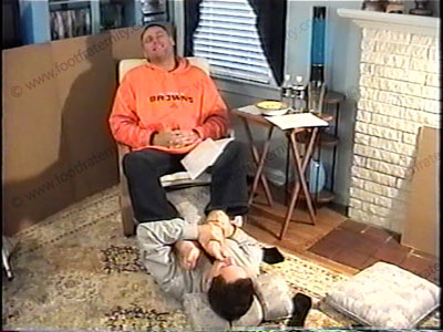 MORGAN TEASES SLAVE WITH HIS T-N-T SOCKED FEET !