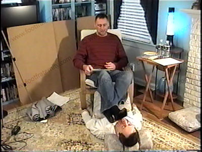 This macho Jock Stud is dressed in jeans, sweater, dark gold toe dress socks as he relaxes on the easy chair with his foot slave beneath his feet for the service to his feet while he verbally dominates & humiliates his bitch who has to serve him. Two views of this scene, one full, and one close up. Morgan orders foot worship & then when socks are removed his slave has to sniff his bare feet, lick them and clean between his toes, sucking toes, spit & more, while this Master laughs, mocks and teases like crazy. Total verbal teasing, humiliation & commands during foot worship as he uses slave’s face as a “play-toy” for his toes & feet both in socks and barefoot. He is good looking arrogant, conceited & cocky & truly controls his foot sissy bitch slaves. He naturally KNOWS just what to say to tease, and dominate foot sissys with lots of teasing while “making fun” of his slave. Much toe play with the slave’s nose and face. Verbal abuse, name calling & commands for the future of this straight stud. Slave must wash Morgan’s feet and drink the foot water after. This whole scene is so real for him & now he expects foot worship, gifts, cash and more!