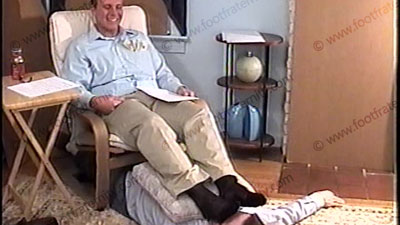 After work, this macho Jock Yuppie is dressed in slacks, nice shirt, cordovan Bass Weejun Penny loafers & thick and thin sheer nylon dress socks as is cocky and taunts and teases his foot slave from now on & relaxes on the easy chair with his foot slave beneath at his feet for the worship & service to his socked feet while he verbally dominates & humiliates his bitch who has to serve him. Two views of this scene, one full, one close up. Grayson makes the sissy pay to smell, worship & lick, serve his feet & be his total bitch with much humiliation & laughter. Total verbal teasing, mocking, humiliation & commands during foot worship as he uses slave’s face as a “foot-wipe” for his socked toes & feet. He sneezes snot & filled loogie in slave’s face. He is good looking arrogant, conceited & cocky & truly controls his foot sissy bitch slaves. He answers your questions about his position as foot master to sissys, with solid humiliation while he shoves his sweaty feet in his sissy bitch’s face. Mocking, teasing, taunting, controlling and laughing at foot sissys who have to follow his commands to serve his macho stud feet as he gives more humiliation & teasing with much laughter as he wipes his socked feet all over his sissy’s face. (No Bare foot action).