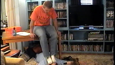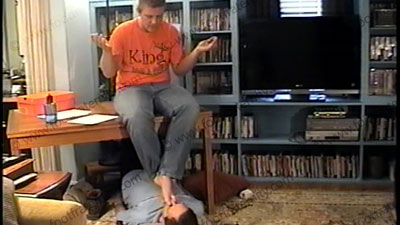 Grayson is done at work in his jeans and dark brown construction boots, as he tells & shows his buddy that he has the control as he sits on the table while forcing his slave foot slave to lick his dark brown lace up construction boots, he laughs and loves this control during good boot licking and worship for a while as he makes fun of his bitch & laughs with his buddy since he now has a bitch beneath his boots. He gives his thoughts on this & loves the power of the guy’s submission to him as he teases, humiliates & dominates his slave. Later boots are removed for sock sniffing and worship as they laugh about it, then onto bare foot licking, kissing, toe sucking and more to his perfect size 12 stud bare feet. He is into commanding & enjoys the power of being a really good looking blonde stud that now has a slave who pays to be humiliated. Then he has slave slip the Masters well worn flip flop sandals on the feet and lick them and suck the toes while in the sandals. Total humiliation, teasing and domination to heterosexual feet, boots, sandals and socks. Much teasing and lots of verbal commands with laughter. Good views of this scene, one full, and close up.