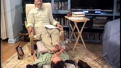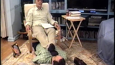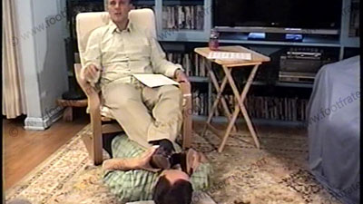 In Bass Weejun penny loafers, nice slacks, sweaty thin dark nylon dress socks, this really jock guy humiliates, dominates & teases his sissy slave at his feet during this audition film for the Stone Phillips on DATELINE NBC. He is conceited, arrogant & cocky as he talks to Stone in the camera while his slave is serving his feet. He embarrasses slave with much action to his Bass Weejun loafers, then, wipes his huge, meaty, size 12, socked & bare feet all over the face during the audition. Total foot teasing, kissing, licking, massaging, with much humiliation & laughter while he answers all of Stone’s questions for the studio audience. Complete foot worship & teasing with many commands & orders during whole scene while Grayson just mocks, teases, laughs & gives the audience what they want to see as he “makes fun” of his foot sissy. He looks right at you in the camera! Grayson laughs his ass off at his power & control. One full view, one close up as he gives commands for being a Straight Stud who can get away with foot slaves worshipping his feet. Lots of mocking & teasing his foot slave during the interview. Grayson is arrogant & controlling as he does complete domination & humiliation to his foot sissy slave.
