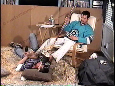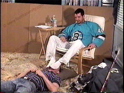 After the hockey practice, Addison forces Austin to remove his hockey skates & then sniff & worship his sweaty white socked feet as he sits in a chair as he humiliates him with foot worship and verbal teasing. Then barefoot action to the perfect feet of Hockey Stud Addison. Addison reads the e-mail from his hockey team about foot slaves & how hot it is to all those straight guys. Sensational film angles & positions. With a very hot good looking slave beneath his feet, he mocks him & makes him worship him because he is a macho straight jock. He controls, dominates, stands on him & loves this power action. Total foot teasing, kissing, licking, toe wiggling, sock smelling & he even make the slave sniff and kiss his crotch as he “tea bags” & sits on the handsome face of hot Austin & more while he enjoys the power he has for being straight & ruling over sissys. He makes Austin wear his game worn sweaty jock strap over his face and nose, with much verbal teasing. Humiliation under these young, jock feet with his very handsome slave under his feet & he often shoves one foot in slave’s crotch. Austin is in many positions under the feet of Addison. Then he makes Austin sniff EVERY piece of his hockey equipment & worship the sweaty athletic stuff.