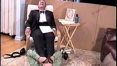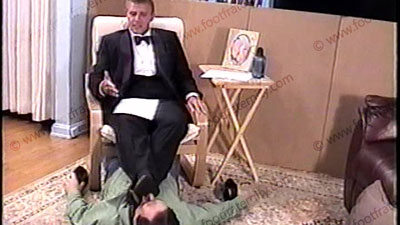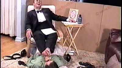 In black tuxedo, dark dress shoes, dark nylon gold toe dress socks, this really jock guy humiliates, dominates & teases his sissy slave at his feet during this celebration of the sissy’s marriage to Master Grayson’s feet. He is conceited, arrogant & cocky as he talks to you in the camera & to his slave, while the foot sissy is serving his feet. He embarrasses slave with much worhip to socked feet, then, wipes his huge, meaty, size 12, bare feet all over the face. Total foot teasing, kissing, licking, with much humiliation & laughter while he teases & forces the slave to confess his weakness to straight guy’s feet. Complete foot worship & teasing with many commands & orders during whole scene while Grayson just mocks, teases, laughs & gives you what you want to see as he “makes fun” of his foot sissy. He looks right at you in the camera! Grayson laughs his ass off at his power & control. One full view, one close up as he gives commands for being a Straight Stud who can get away with foot slaves worshipping his feet. Lots of mocking & teasing as Grayson is arrogant & controlling with complete domination & humiliation to his foot sissy slave. Gifts, money & new sandals placed at his feet in worship. Two views, one close up from the bottoms of his feet.