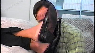Cocky, Arrogant, Grayson has a sissy kneeling at his black loafers while he lays back on the sofa, degrades, humiliates & forces him to kiss, like & serve his shoes, worship & smell his sweaty dark gold toe part sheer dress socks and lick, kiss & service his bare feet while he dishes out verbal abuse, humiliation & domination. Licking between the toes, toe sucking & more. Much dangling of the shoes in the slaves face with lots of laughter. The slave is humiliated as he kneels at Grayson’s feet for worship & service. Much hot talk from Grayson while his feet are sniffed, licked, kissed and serviced in all ways. Total foot worship of the shoes, socked & bare feet while the yuppie humiliates him, degrades him, blackmails him & forces the foot sissy into permanent foot worship & slavery to him. He is hot & tough as he shoves his feet in the foot slave’s face that is at his feet throughout the entire scene while laughing at him & teasing him. He knows this is the reason that foot slaves are on earth – to serve Straight men’s feet! He slips his loafers back on after the socks are off, and then dangles the loafers off of his stud feet in the sissy’s face for more teasing. One full length, one close up from the sides & soles of the feet in the slave’s face to better show the dangling loafers.