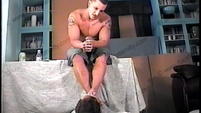 This is a view of the scenes of Apollo (# 4611 His Slave Father) and #4614 His Web Site) from the bottoms of his feet showing Apollo’s whole body while he does straight talk but from the view of the slave so you can see the bottoms of his feet and see him looking down on you. One hour in socks and one hour of bare feet. A Very exciting film for those who like to see this from the view of the soles & being beneath this straight stud’s feet while they are being kissed, licked and serviced, along with seeing his face above. Two full hours of action from this camera view that was not shown from this view in any other film. A very awesome film angle of this hot foot God.