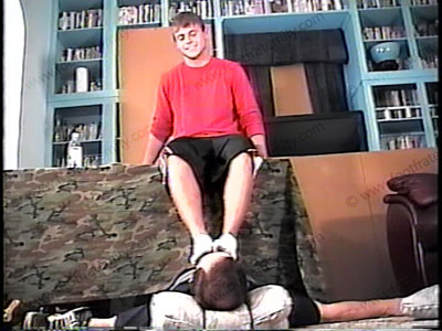 After being out on his after prom, young (just) 18 year old Wyatt is happy to be out of high school & discovering in a friendly, yet shy manner that he has foot slaves because he is so attractive and straight. He is wearing in shirts, shirt, sneakers & dirty, sweaty short white sweat socks as he relaxes, sitting the table with his foot slave beneath it, under his feet for the first service of his sweaty socks & bare feet worship. During a foot massage & service, he is answers a few questions about this new position that he is experiencing of controlling & being paid to have a foot slave at his feet. Much kissing and sniffing, along with bare feet & toes massaged & kissed. Two views of this scene, one full from the bottoms of his feet, and one close up from the tops. Wyatt does this naturally, uses slave as a toy for his feet as he looks at a Playboy magazine and is amused at this situation of the power trip at his feet. He is extremely good looking & knows how to tease foot slaves with ease as he takes his place while using slave for foot service. He smiles & likes this power trip. He is just learning about how it feels to have a submissive grovel at his feet & is quietly amused at this trip!