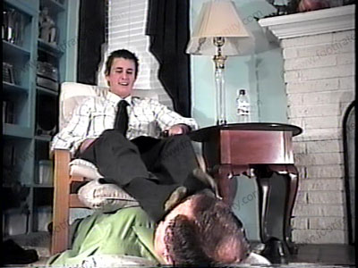 After work, This flawless professional in shirt, tie, loafers & gold toe dress socks relaxes on the easy chair with his foot slave beneath at his feet for the first service of his sweaty socks & bare feet worship for the second service of his sweaty socks & bare feet worship. During foot worship & service, he responds to slaves’ confession about this Yuppie Kendell’s new position that he is experiences of controlling, commanding, with verbal responses & enjoys the power of being Straight jock with slaves who pay to be humiliated by him while he teases them and laughs at them while they are beneath his feet. There is sock sniffing, kissing, along with bare feet & toes licked, sucked & kissed & more. Straight jocks rule as he takes over the power over all who belong beneath his feet. Three sensational views of this scene, one full length view, one close up & one from the bottoms showing the full body of Kendell as though the camera was your face while he dominates with his feet in your face. Kendell does this naturally and is amused at the newness of this situation of the power trip at his feet. He is dominant but friendly. He is just learning about how it feels to have his bitch grovel beneath his feet.