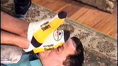 He is a Straight, macho, alpha male, stud who believes that fags should be his "male foot slaves" who bow to him and grovel at his feet. When we first met, I confessed to him that I have a "male foot fetish" for men's feet, and "I kiss feet." He laughed in my faggot face and said that now I can be his "cash slave", or "human ATM" and pay for the privilege of "worshiping my feet", because I am his "homo bitch"? I was humiliated and embarrassed to admit to him that I needed, not just wanted to "lick his feet", "suck his toes", "smell his sweaty socks" and "kiss his feet". He said that I was a "queer sock lover", and he plans to take advantage of letting me "serve straight guys" and "worship straight men". "You're gonna pay, pay and pay more". just because he has "perfect male feet" and I am a "toe jam" eater who knows that "straight guys rule" "Yes, Foot Master, Sir, You are a stud who knows how to give humiliation and domination" to a "faggit foot slave". He knew instinctively that I would beg to "lick between his toes", have him "walk all over me", "trample me", and "shove his foot in my face". I was a pussy fag who had to have this treatment from a heterosexual man who would love the power trip and use me to "lick his feet", "suck his toes", "kiss feet" and "take a whiff of his sweaty socks" because I have a "gay foot fetish". This was the beginning of how I got Master ______ to be a male model for the Foot Fraternity. He knew that I was a foot lover and needed "his feet in my face". It started with simple photos of his "male bare feet" and quickly became a situation where I was his "foot slave" on a regular basis and had to promote him on the web site to have the visitors buy his "male foot fetish film", and "foot fetish videos" just because they also desired to "kiss his sweaty foot", "lick his foot sweat" and be "his foot slave". He got paid for every visit with me as he would start off by saying, "You are my bitch", so no more "free foot photos". It's time that you realized who's your daddy and that you will pay to be my "toe sucker" and "foot slave for life". I knew that I wanted to be "his footslave", but didn't know that it would cost me so much. He forced me to make a choice between staying with my lover or his feet! I can't believe that he forced me to do that. I was seduced by the "arch of his foot" on this "sexy guy", and needed to be his "foot mat" and foot stool. I had to pay to that honor! I chose his feet and ended my relationship. He asked if I need to "smell feet", "kiss foot" and "lick boot" as he laughed in my face. "Yes Sir", "I worship Straight men". I have a strong "male foot fetish" and I run an international organization for guys with a "shoe fetish" and want to be a "trample slave" or "toe sucker" to guys feet." His eyes opened wider and he asked if it meant that there are thousands of footslaves and "foot lickers" who want to take a "whiff of my feet"? Is this a "gay man foot fetish club" or something? I told him the truth and he has OWNED me ever since that confession. I have had to pay for his vacations, buy him a truck, and pay for every visit he made when I have to "worship him", "smell his socks", "kiss his toes", caress his feet and beg him to "walk on me" with "his perfect feet". To this day, he still loves this power that he has over me and other foot fags who have this intense need to "smell the foot sweat" of "his sweaty feet". Yes, we have a "gay foot fetish" and need this jock to order us to "Smell my feet" or "Sniff my socks" and now we have to pay the price for his "male foot fetish movies". He loves the control that he has by "wiggling his sweaty toes in my face", knowing that I and a "toe sucker" and will obey his orders. He was amused when I first asked to "eat his toe jam" and beg him to clip his toe nails in my mouth for me to swallow. Now he charges for this and makes fags all over the world pay for this gift from him! I asked about doing "male foot fetish video" and he loved the idea of being paid for this while he just sat back and relaxed with a beer while watching a football game or some hot straight films while "I am his footstool" or footmat. He would even have his straight brother come over and the two would play video games while I had to "smell their feet", worship him and pay them for "kissing the guys feet"! His brother also became a Foot Frat model (that is a clue for you to guess who this model is). Now he just walks in and I have to "kiss his boots" every time he enters or leaves my house. He knows that we all need to hear him command us to "Sniff my socks" or "Smell my feet" because we are his "gay foot slave". He knows that he can make the best "male foot fetish video" and collect big time when he laughs at us underfoot while saying, "He has a foot fetish" and "he needs my straight feet". This is all real, because I am his foot slave, and because we need to "make love to his feet", he can have anything he wants. His feet are very sweaty and smelly and this makes his laugh more when we have to "lick between his toes" and "eat his toe jam". This Adonis loves to "shove his feet in my face" while laughing at my humiliation because we "adore his feet". He can just "wiggle his toes" in our face and bark out an order, knowing that it will be done. It has cost a great deal to keep this Male Master as a Frat model Can you guess which model has just been described? Send in your comments or your guess to: Dug Gaines and if you are right, win a free hot story book of scenes of this "male foot fetish!"