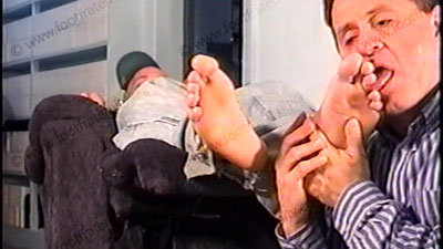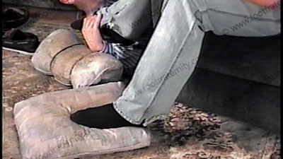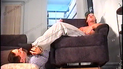 Apollo is relaxing while watching hot X films of submissive women to straight guys. His slave is making love to his socked feet, then bare feet while he really enjoys the films. He is wearing black dress socks, boat shoes & jeans with no shirt. The socks & bare feet are kissed, licked, worshipped & loved from two other sensational film angles (one full, once close up). Toes sucked, licking between toes & more as you see “foot love-making” at its best to this hot Alpha man. He enjoys the films while his socked & bare feet experience love making. The movie is playing softly as he is totally into the eroticism of the submissive scene while his feet are loved and adored.