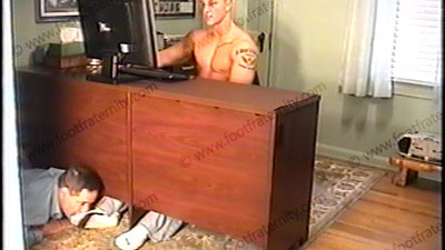 In jeans, white sweaty socks & no shirt, Apollo is busy doing his homework on the computer at his desk while he has his slave worship his socked feet, then his bare feet while at the foot of the desk. Apollo ignores him most of the time while his feet are idolized & serviced. He is very cocky & arrogant as he just sits at the desk having foot service from his bitch. Three good angles, once full length view, one close view from the top of his feet and one close up from the sides & bottom. He calls out an insult & comment now and then just to further dominate his bitch. A perfect fantasy come true scene that you all would have with a college student and you being at his feet in his room while he is at his desk. HOT!