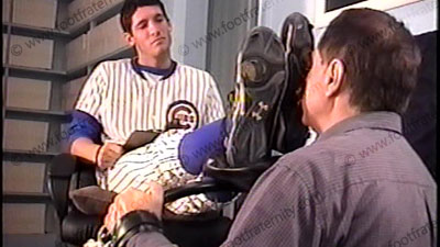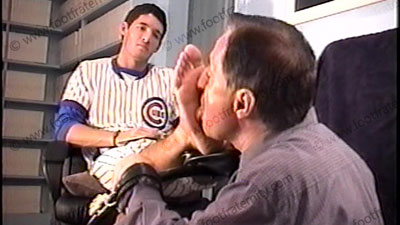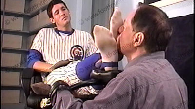 After the game, Juan sets a trap to catch a slave to be stuck serving his dirty cleats, sweaty stirrups & bare feet! In uniform, Juan relaxes after the foot slave gets caught in this Footstool trap rack while forcing him to whiff his sweaty baseball sheer socks while controlling him and making him serve at his feet which are put up on the padded tray which is level with his slave’s face. His foot slave as has to smell, kiss, lick and worship Juan’s socked feet, then bare foot licking, kissing & sucking while being trapped in this human foot stool device. While teasing him & controlling his slave, he makes comments & teases his slave who is trapped at this Spanish jock’s feet. In this trap, there is no getting away from the Master’s feet while he relaxes & enjoys the power. He wiggles his toes and flexes his feet during the whole time, just to tease with his perfectly shaped alpha feet. Three hot wonderful angles & views of this scene with one close up. He truly owns all foot slaves at his superior feet & loves the power. A fine piece of sissy furniture – built into Juan’s human foot stool! Lots of teasing with his feet & controlling as he takes power over his slave during the whole time. Parts of it have Juan just watching and being amused at the power he has with his feet.