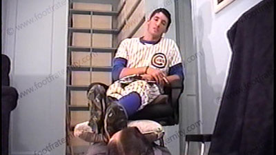 After the game, Juan has his slave serving his dirty cleats, sweaty stirrups & baseball socks. In uniform, Juan relaxes after while having him whiff his sweaty baseball sheer socks while telling how he feels for real about foot slaves and making him serve at his sweaty socked feet which are in his slave’s face. His foot slave as has to smell, kiss, lick and worship Juan’s socked feet, while he tells what it’s like to have a foot slave at this Spanish jock’s feet. There is no getting away from the Master’s socked feet while he relaxes & enjoys the control. He wiggles his toes and flexes his feet during the whole time, just to tease with his perfectly shaped alpha feet. Three hot wonderful angles & views of this scene with one close up. He truly owns all foot slaves at his superior feet & loves the power. Lots of reality foot service & controlling as he takes power over his slave during the whole time. He is very easy going and likes the attention to his feet for being an athlete and alpha male. He tells his thoughts for real and foot love making happens to his all male feet! (No bare feet, only socked feet).