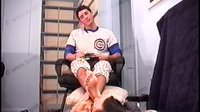After the game, Juan has his slave serving his sweaty stirrups, baseball socks then sweaty bare feet. In uniform, Juan relaxes after while having him whiff his sweaty baseball sheer socks while telling how he feels for real about foot slaves and making him serve at his sweaty socked, then his sweat feet which are in his slave’s face. His foot slave as has to smell, kiss, lick and worship Juan’s feet, while he tells what it’s like to have a foot slave at this Spanish jock’s feet. There is no getting away from the Master’s feet while he relaxes & enjoys the control. He wiggles his toes and flexes his feet during the whole time, just to tease with his perfectly shaped alpha feet. Three hot wonderful angles & views of this scene with one close up. He truly owns all foot slaves at his superior feet & loves the power. Lots of reality foot service & controlling as he takes power over his slave during the whole time. He tells his thoughts for real and foot love making happens to his all male feet! He is very easy going and likes the attention to his feet for being an athlete and alpha male.