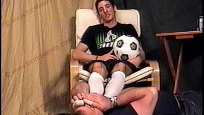 While relaxing in an easy char after a soccer game with Sean beneath his feet in this film Juan answers the interview questions for real on why he does this work for the Fraternity, his true feelings, what it’s like for a straight guy to have a man worship his feet & why he likes having a slave at his feet during the film sessions, why he said “yes” to being a Frat model and answers many other powerful questions to give you insights on the real guy! He is wearing a soccer uniform and you see him flexing his sweaty, white socks in Sean’s face during the whole time. It’s fascinating being able to see and hear what he truly feels and thinks and how he really likes the attention to his feet for being a cage fighter champion & soccer player. (He is only 22) He loves this power & control & plans to have foot service for a very long time. Three film views of this documentary (One close up of his feet, one half of full view & one full view from the bottom of his feet.) He loves attention! He really likes gay guys and the fact that they want to “make love” to his feet and give him all kinds of attention. He answers the questions while Sean worships his socked feet, then barer feet.