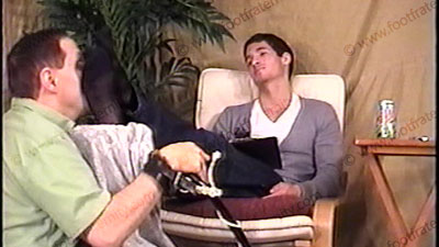 Hot young Juan, the straight, cage fighter & soccer player gets an email from his buddy who saw the first film of him with a foot slave. He responds to the note while embarrassing his slave. He has slave locked in the sissy trap & is amused at the power of making his slave serve at his black thick-n-thin sweaty socked & be humiliated & dominated by them. He has slave pinned at his feet while he relaxes for worship & service. Slave must smell his sweaty socks, as he teases & laughs at the power his feet have in his slave’s face while he tells his buddy, Chris, about doing this full time now. Three film angles – one close-up from the sides of his feet, one full length, one full from the soles of his feet. He controls & teases his slave while realizing his power as he gives teases, comments & watches. He is aloof at this power of teasing with his toes & feet in socks as he reads the note from his buddy about having foot slaves who need his young jock feet. He does it all in a friendly controlling manner. He then relaxes, chills & quietly makes some decisions as to how this is going to go in the future for his foot slave. He is playing on our need to worship the young Spanish feet of this hot straight jock. No bare foot, just sheer sock action with these perfectly shaped feet.