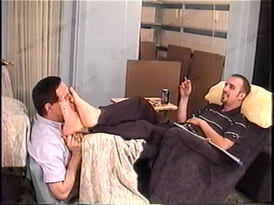 After work, Cooper stops by in nice slacks, & black sweaty dress socks to relax with his foot bitch is pinned at his macho feet for the service of his sweaty socks & bare feet. During service, he tells what it’s like to rule sissy foot slaves from the rules of the “sissy rule book” as he teases his foot slave verbally & with his socked and bare feet. He likes the power trip of us really needing to smell, kiss, lick & worship his feet, with slaves who now must obey & be dominated by him while at his feet. Slave starts smelling, kissing and sniffing the socked feet, then worship to his sweaty bare feet & toes sucked, licked & kissed. Straight jocks rule as slave licks his awesome feet. Three sensational views of this scene, one full length view, one close up & one from the bottoms showing the full body of Cooper as though the camera was your face while he dominates & teases with his feet in your face. He does this in a teasing & arrogant, cocky manner and loves this control of having foot slaves at his feet. During foot worship & service, he laughs at the rules & talks & teases his foot slave & expresses what his slaves must do to be beneath his sweaty socked & bare feet. He is powerful & very straight, with hot verbal talk & commands & likes this worship. There is bare foot kissing, licking & worship & more. Hot talk as he tells the rules for slaves from the sissy rule book, with much teasing, laughing & humiliation at the feet of this stud. This power is going to his head & he is lovin’ it.